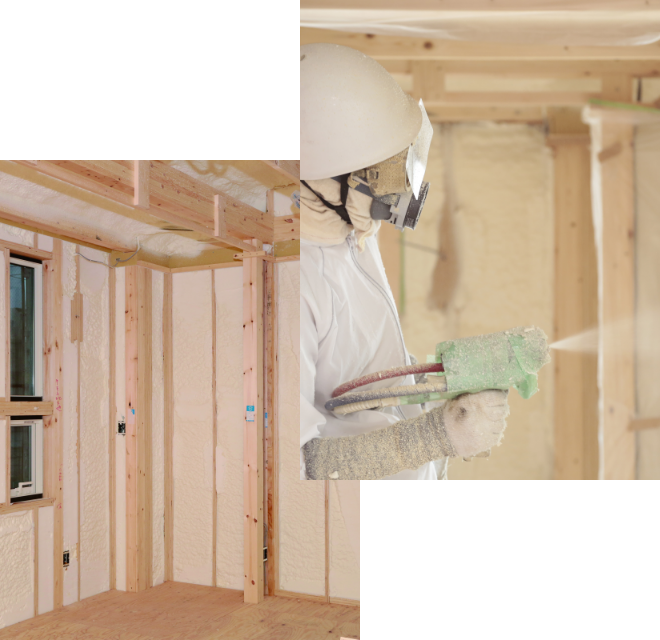 建物を火災の熱から守る耐火被覆工事、室内温熱環境を快適に保つ断熱工事、ほか大規模修繕工事など、人、建物、ひいては地球環境を守る工事を行っています。