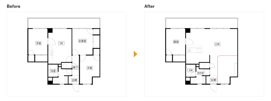 実はこのマンション、既に2部屋がリノベーション済みです。他社さんが手掛けた家賃UPの成功実績がありました。NENGOに3部屋目のリノベーションをお任せいただいたとき、オーナーさまからこんなご提案がありました。
