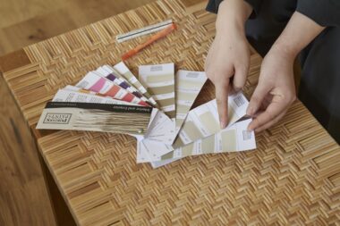 そうして何色か提案していくうちに、「この方は赤み系が好きなんだな」「黄み系が好みなんだな」といった傾向が見えてくる。そこに、これまで3年間で培ってきた色の情報を重ねて、お客さまの感性と空間の素材感がぴったり合う色を提案していくんです。色選びは迷われるところですが、一番楽しい時間でもあります。ぜひ楽しんでほしいなと思います。
