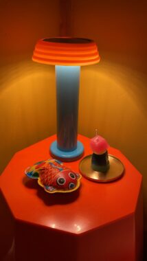 やっぱり自分の部屋ですね。黄色の壁にオレンジのスツール、その横に青いランプを置いていて、どの組み合わせも最高です。私は原色と原色の組み合わせが好きで、毎回ビビッとくるんです。壁との相性を想像しながらインテリアを探す時間も楽しくて、部屋の中は全部「最高」で埋まっています。