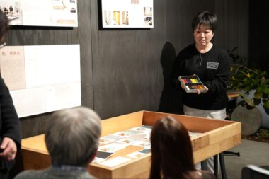 今回の展示にかかわる大江建築実測調査で、ポーターズペイントは「色見本の作成」をお手伝いさせていただきました。これまでNENGOとして、リノベーション工事や販売仲介で「歴史的建造物の継承」に取り組ませていただいておりましたが、今回は建築資料の「保存」の観点から関わらせていただく機会となりました。