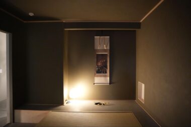 ショールームの空間に合わせて、サイズや見せ方を選定いただいた写真展示。「Salon(和室)」には掛け軸仕様の写真と装飾を設置いただいております。「Library」には資料を設置いただきました。
